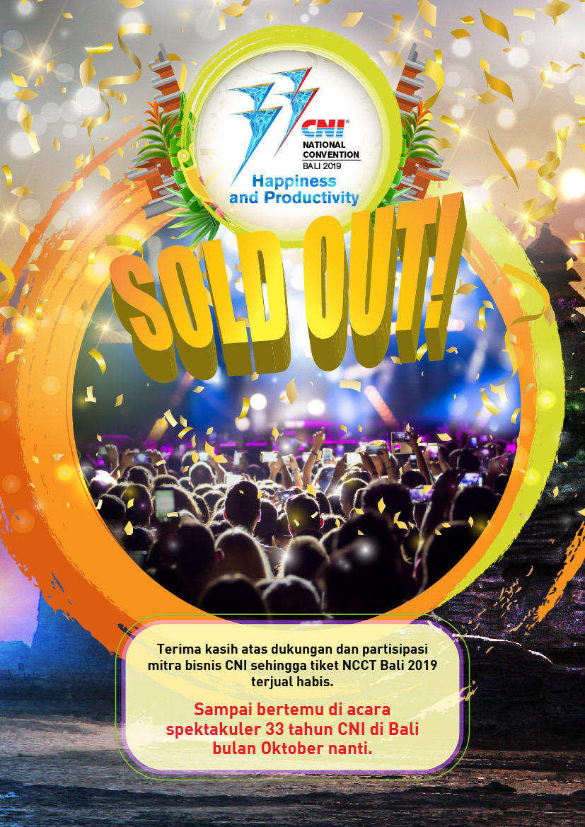 “Terima kasih atas dukungan dan partisipasi mitra bisnis CNI sehingga tiket CNI National Convention Bali 2019 telah terjual habis. Sampai bertemu di acara spektakuler 33 tahun CNI di Bali bulan Oktober nanti!” tutup Yudi.(rls)