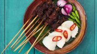 Beralih ke masakan khas wilayah Lombok, di FJB 2023 kali ini juga hadir Sate Rembige Hj Sinnaseh dari daerah Mataram, Lombok.