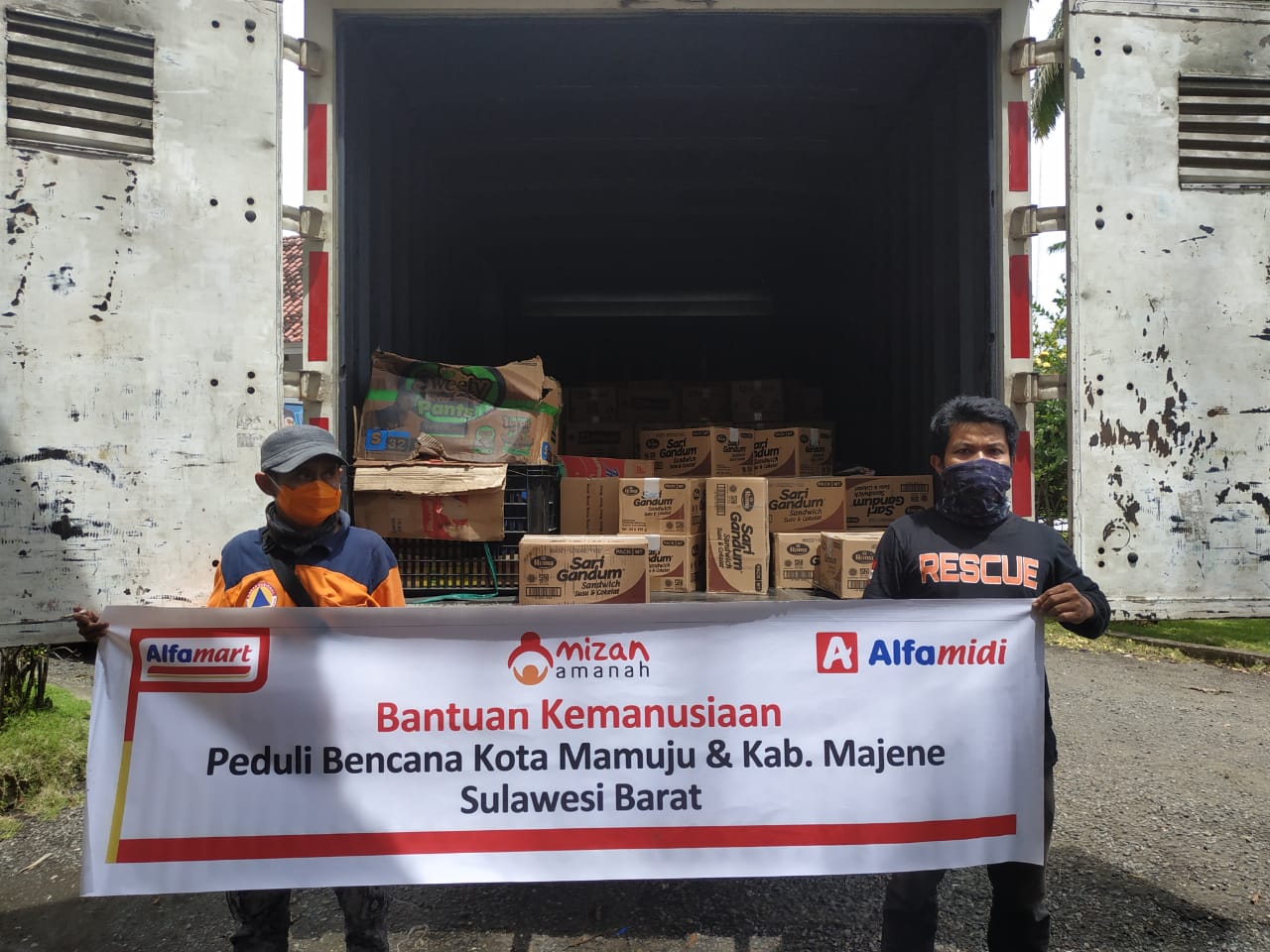 Adapun pengiriman bantuan dilakukan dari Cabang Makassar dan pengiriman bantuan pula dilakukan dari Alfa Grup Cabang Palu.