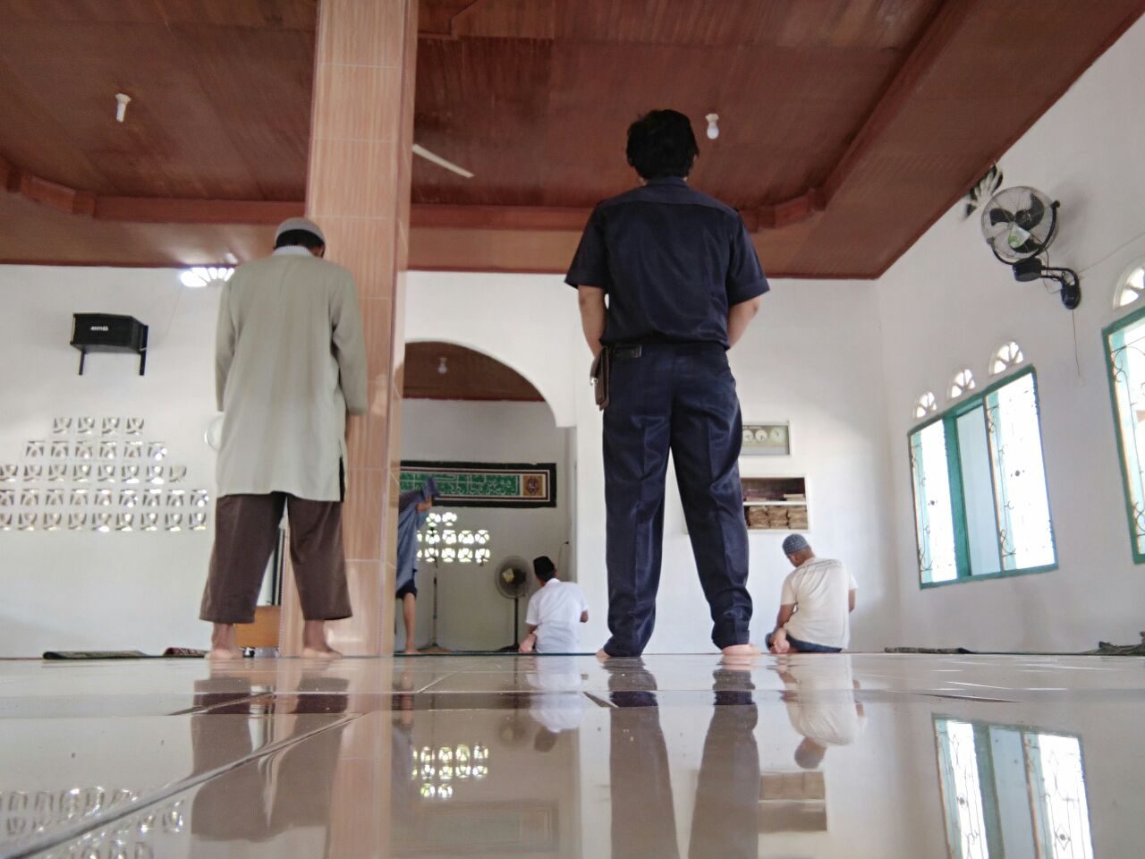 Koma.co.id, Luwu Utara —- AIPDA Shulham, Kanit Intelkam polsek Mappedeceng Polres Luwu Utara, melaksanakan shalat dhuhur secara berjamaah di masjid Nurul Amin, desa Cendana Putih 2, kecamatan Mappedeceng, Rabu 30 Mei 2018.