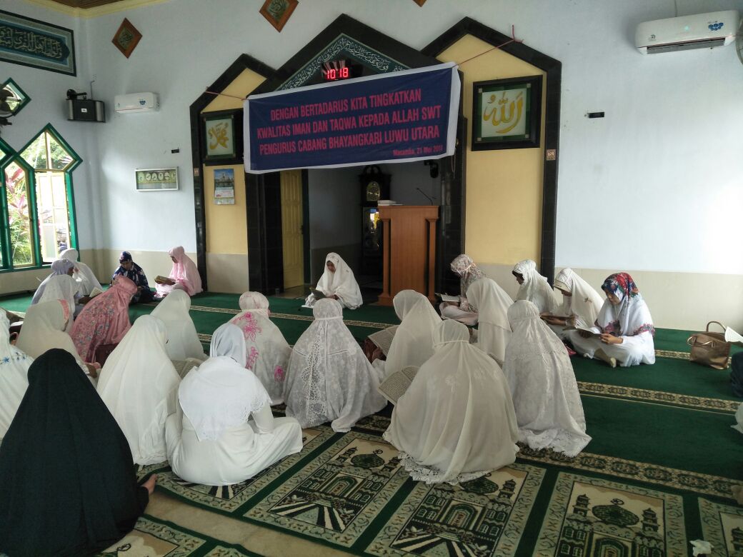 Koma.co.id, Luwu Utara —- Usai lakukan sholat ghaib dan tadarrus Al Quran, puluhan Ibu-ibu dari Bhayangkari cabang Luwu Utara mendengarkan tausiah dari Maulana Fajar Al Hafids, Senin 21 Mei 2018.