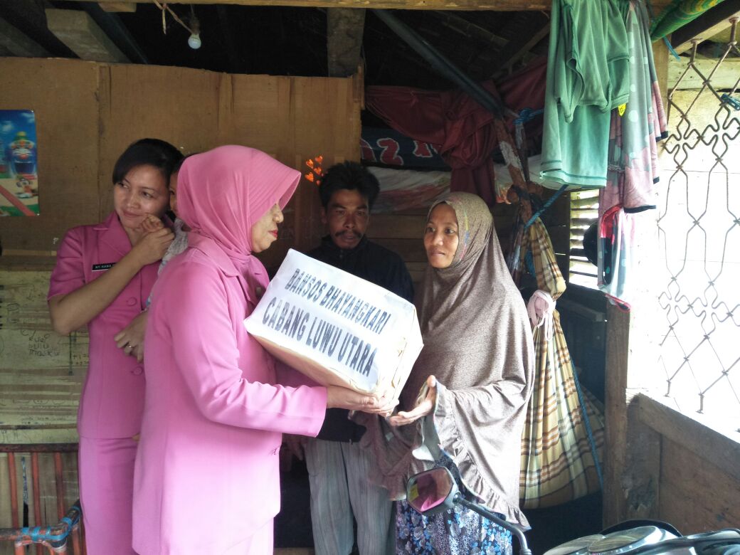 Koma.co.id, Luwu Utara — Pengurus Bhayangkari Cabang Luwu Utara berkunjung kerumah warga yang kurang beruntung di Desa Dandang, Kecamatan Sabbang, Senin 28 Mei 2018.