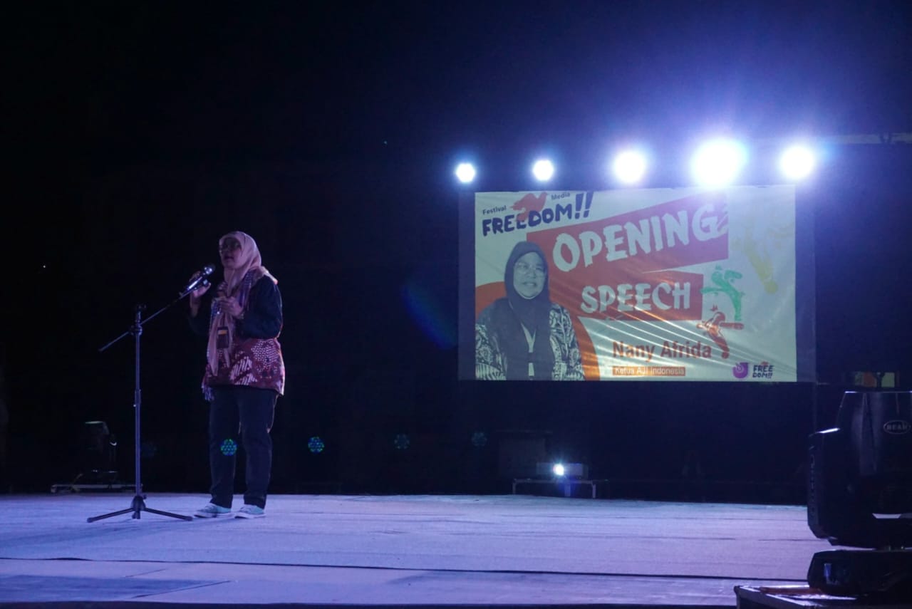 “Festival media ini adalah ajang untuk seluruh jurnalis di Indonesia. Temanya kali ini cukup serius, karena demokrasi kita sedang sakit. Ini bukan acara seremonial, tapi momentum untuk melawan penyakit berbahaya dalam demokrasi: pembungkaman pers,” ujar Nany.