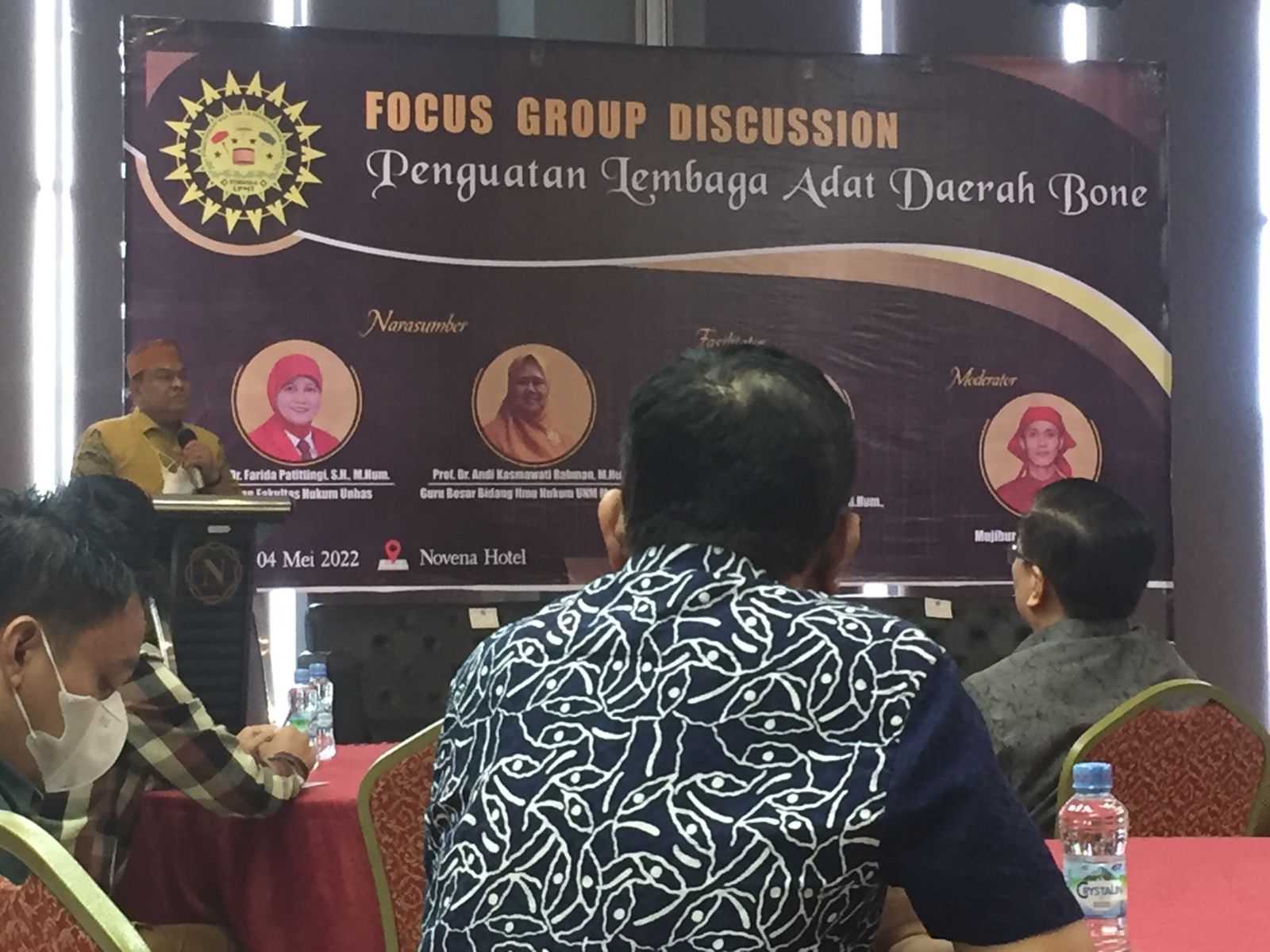 Kegiatan FGD ini di ikuti unsur pemerintah, LSM, jurnalis dan pemerhati budaya di Kabupaten Bone yang menghadirkan pemateri Prof Andi Kasma dan Dr Andi Akhmar.**