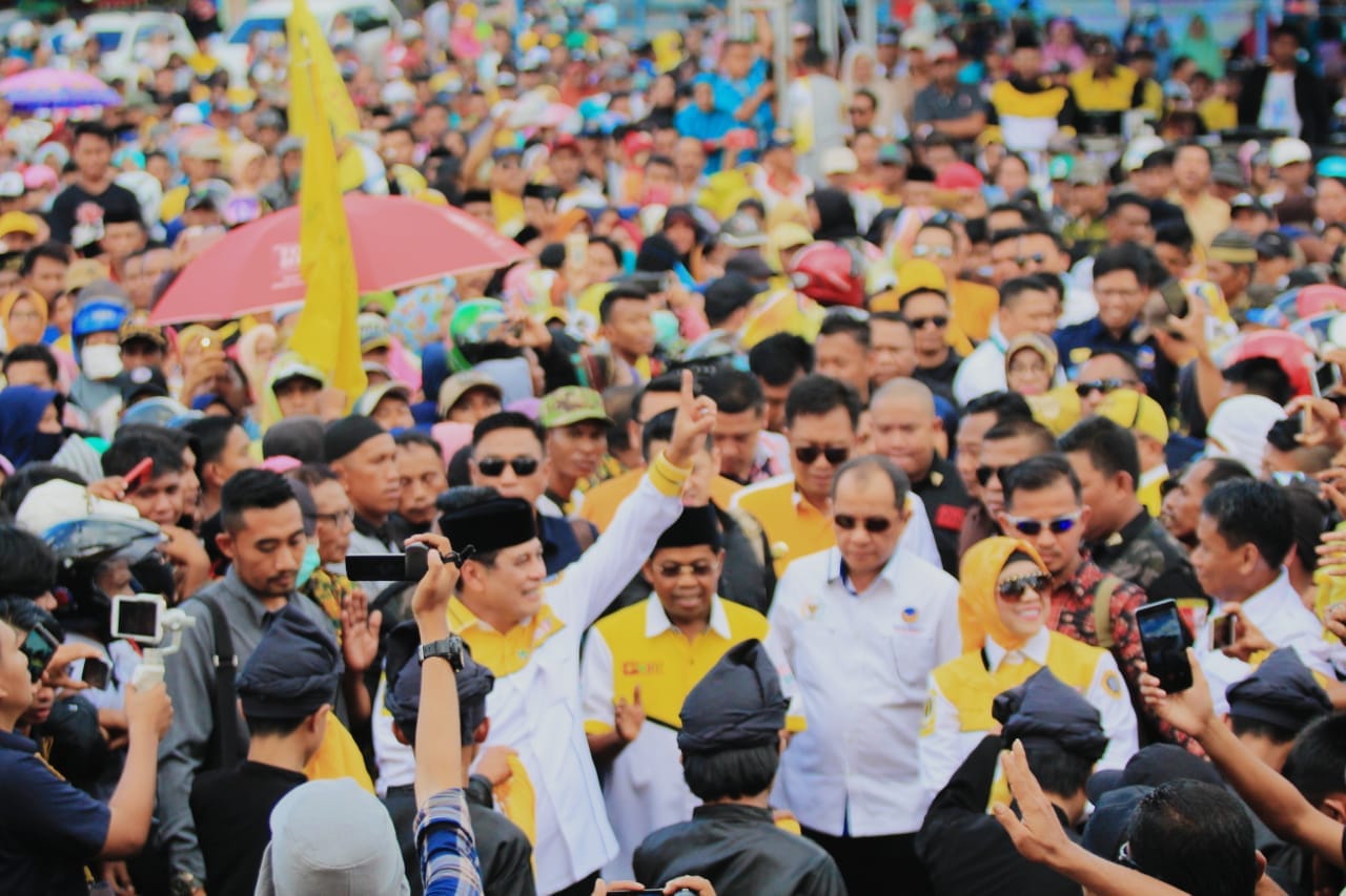 Meski hanya kampanye terbatas, tetapi ribuan massa membanjiri lokasi kampanye di Lapangan Bicari, Desa Palambarae, Kecamatan Gantarang, Selasa (19/6). Antusiasme warga Butta Panrita Lopi tak bisa dibendung demi menghadiri pemaparan visi-misi NH-Aziz.
