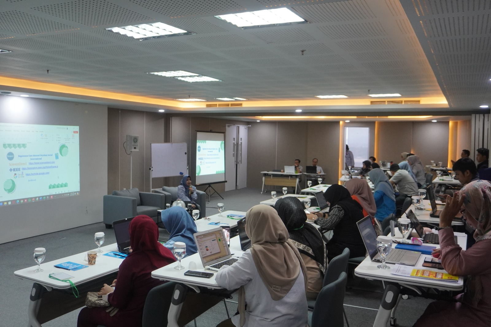 Para peserta pelatihan mendapatkan panduan mengenai cara mencari jurnal yang tepat, tips menulis artikel yang sesuai dengan kaidah penulisan ilmiah, serta strategi untuk menghadapi proses review jurnal internasional.