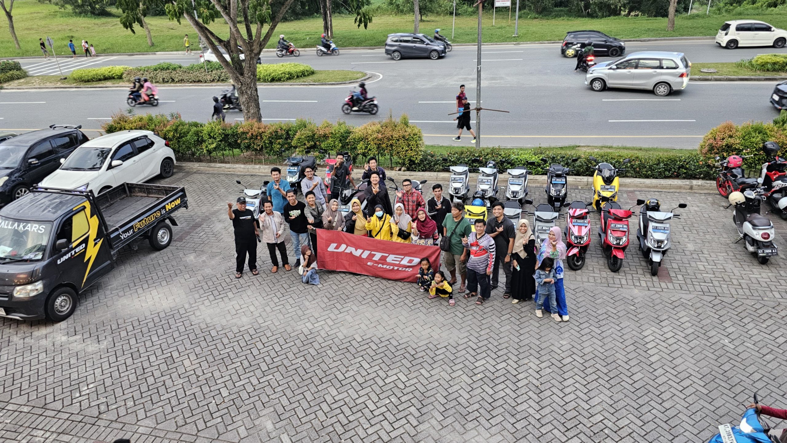 Acara ini berlangsung di lapangan parkir Showroom United E-Motor Balikpapan, Sabtu (22/6/2024). Dihadiri oleh puluhan anggota komunitas yang memiliki motor listrik United dari Tipe T-Series (TX3000, TX1800, T1800) hingga Tipe MX1200. Tidak hanya berkumpul, mereka saling bertukar cerita dan pengalaman mengendarai motor listrik.
