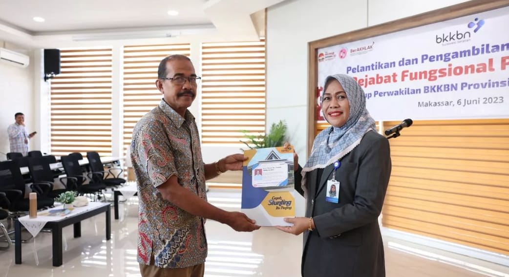 Koma co.id, Makassar– Kepala Perwakilan BKKBN Provinsi Sulawesi Selatan, Dra. Hj. Andi Ritamariani, M.Pd melantik dan mengambil sumpahjjanji Pejabat Fungsional Perencana lingkup Perwakilan BKKBN Provinsi Sulawesi Selatan di Ruang Pola, Kantor BKKBN Sulsel, Selasa (06/06/23).