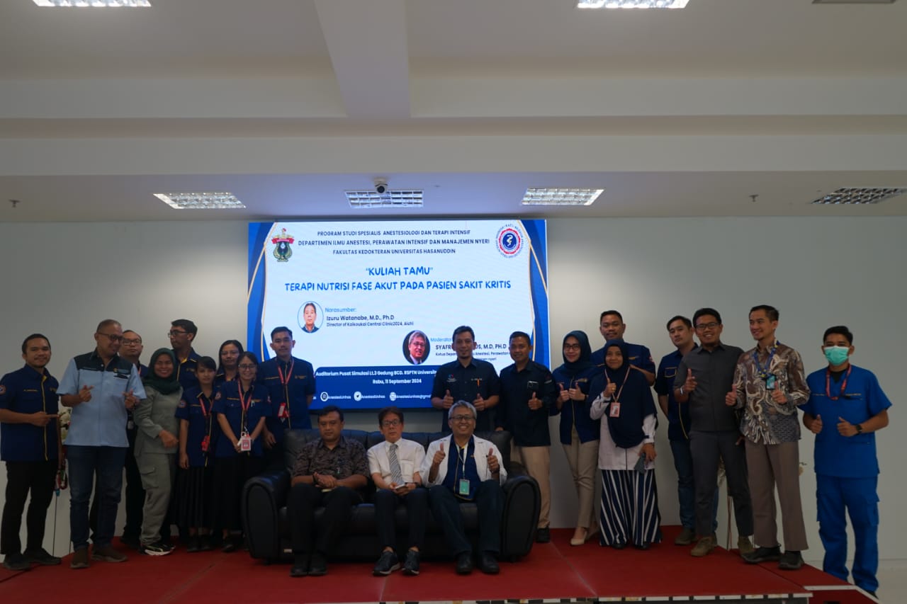 Kuliah ini menghadirkan Dr. Izuru Watanabe, M.D., Ph.D., Direktur Kaikoukai Central Clinic, Aichi, Jepang, yang merupakan pakar dalam bidang terapi nutrisi. Acara dipandu oleh dr. Syafruddin Gaus, Ph.D., Sp.An-KMN-KNA, Ketua Departemen Anestesiologi Fakultas Kedokteran Unhas.