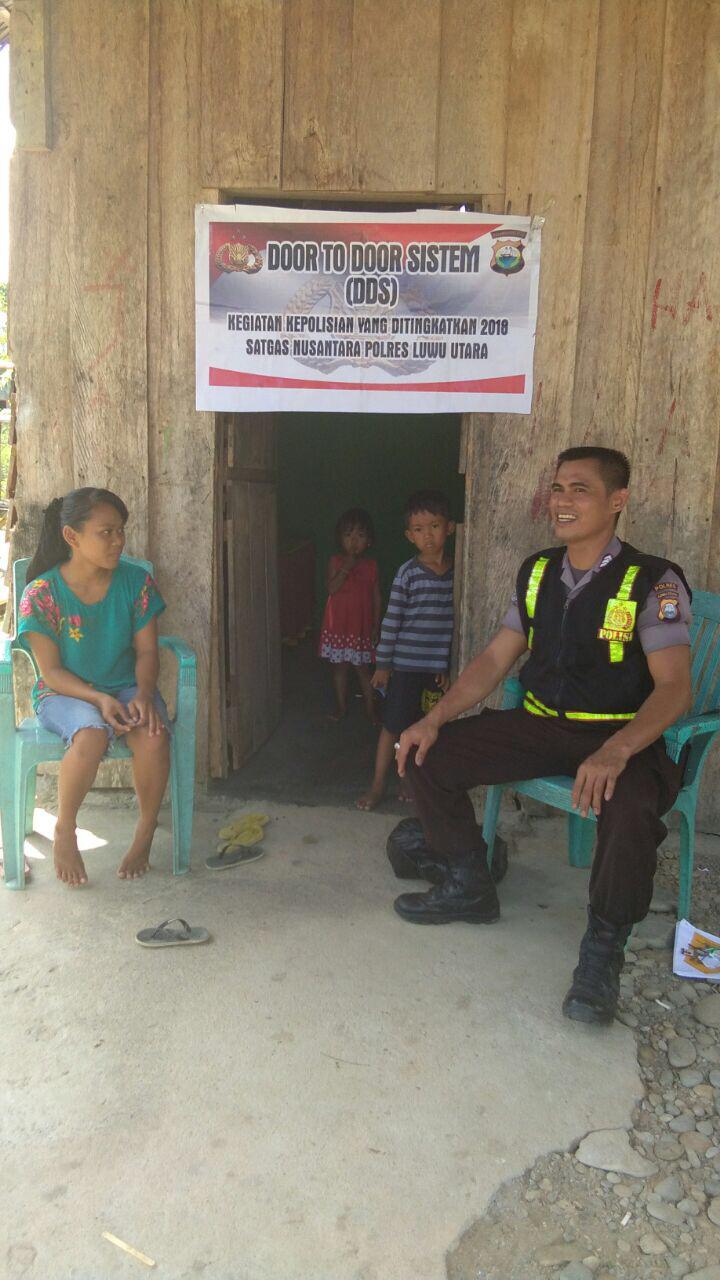 Koma.co.id, Luwu Utara — Bhabinkamtibmas Polsek Mappadeceng Polres Luwu Utara, Brigadir Masrul melaksanakan Door To Door System (DDS), Sabtu Mei 2018.