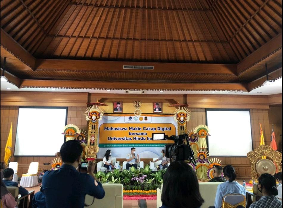 Koma.co.id, Denpasar– Kementerian Komunikasi dan Informatika bersama dengan GNLD Siberkreasi tengah menyelenggarakan salah satu kegiatan program Literasi Digital, yaitu Mahasiswa Makin Cakap Digital dengan tema “Literasi Keuangan di Era Revolusi 4.0”. Bekerjasama dengan Universitas Hindu Indonesia, khususnya Fakultas Ekonomi dan Bisnis Pariwisata kegiatan ini berhasil memikat banyak antusias masyarakat. Lebih dari dari 1000 mahasiswa/i maupun dosen ikut bergabung secara daring dan kegiatan ini juga diikuti oleh 50 peserta yang hadir secara langsung di tempat acara berlangsung, yaitu di Kampus Universitas Hindu Indonesia. 22 Oktober 2021.