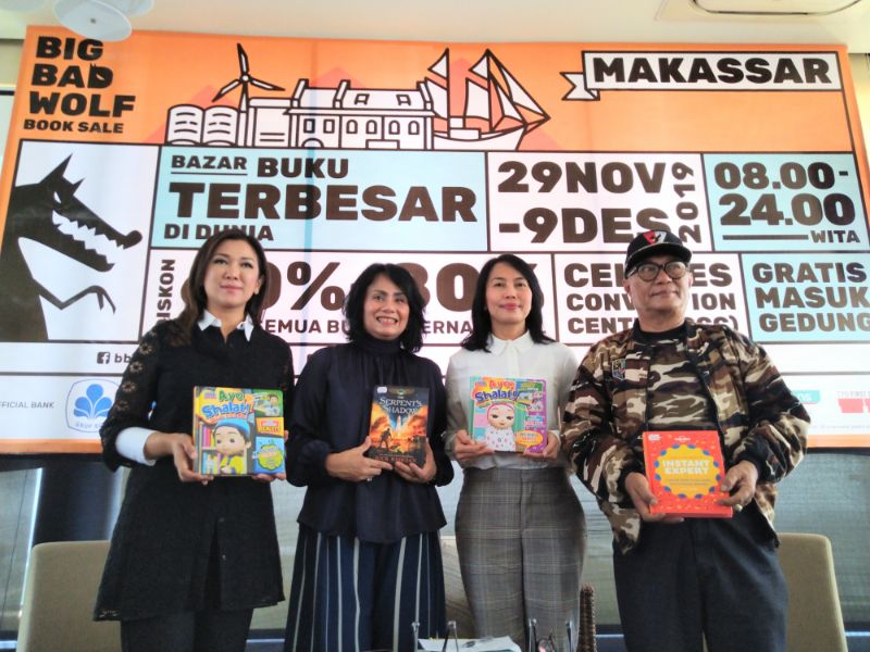 “Anak yang sejak dini terbiasa membaca akan Iebih percaya diri karena mereka memiliki segudang informasi. Untuk terus meningkatkan tingkat literasi di Indonesia, Bazar Buku Big Bad Wolf terus bergerak untuk mengajak masyarakat agar Iebih gemar membaca buku. Tahun ini sudah tujuh kota yang Bazar Buku Big Bad Wolf hadiri, yakni Jakarta, Bandung, Yogvakarta, Medan, Surabaya, Balikpapan dan Makassar merupakan kota terakhir dan perwakilan untuk Pulau Sulawesi, kami berharap dengan adanya Bazar Buku Big Bad Wolf, literasi di Indonesia terus meningkat,” katanya.