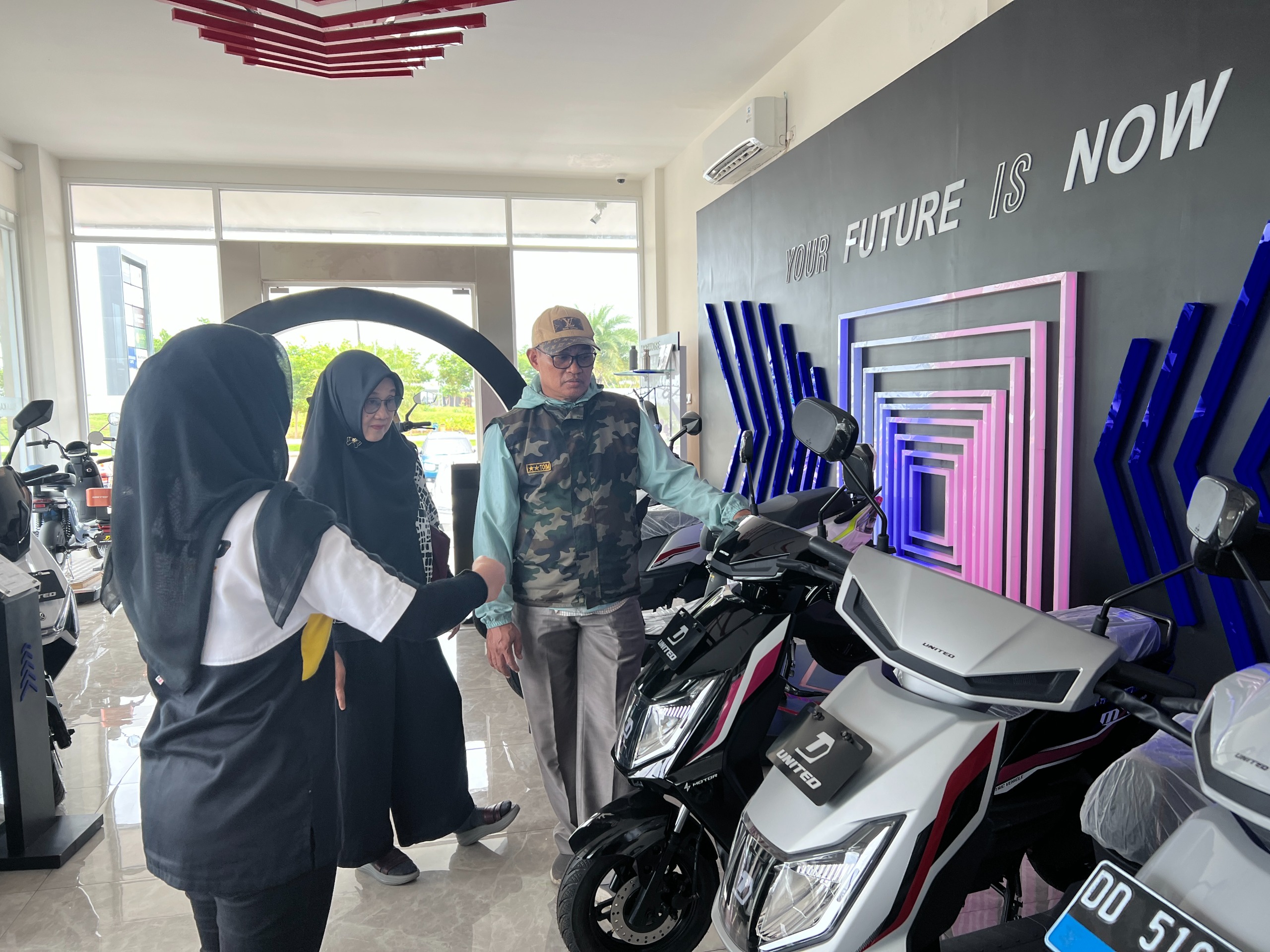Pelanggan yang ingin merasakan sensasi berkendara dengan motor listrik dapat berkunjung ke showroom United E-Motor Makassar. Fasilitas showroom telah dilengkapi dengan unit test ride, charging station, dan berbagai pilihan merchandise. Showroom ini terletak di Jl. Metro Tanjung Bunga Ruko Business Park CPI Blok C1 No. 1. Selain itu, kami juga telah menyediakan Satelit Store di daerah BTP yaitu Blok 1 No. 15 dan daerah Antang di Jl. Tamangapa Raya Kec. Manggala, dan daerah Maros di Jl. Jenderal Sudirman, Kec. Turikale demi kenyamanan dan kemudahan aksesibilitas pelanggan.(rls)