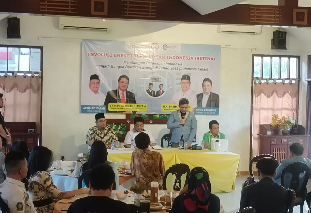 Uji gagasan energi Ridwan Hisjam disampaikan setelah Koordinator Nasional Relawan 08, H.A. Bashar, S.H., M.H. menyatakan sikap tegas mengunggulkan Ridwan Hisjam sebagai kandidat terkuat Menteri ESDM pada kabinet baru mendatang.