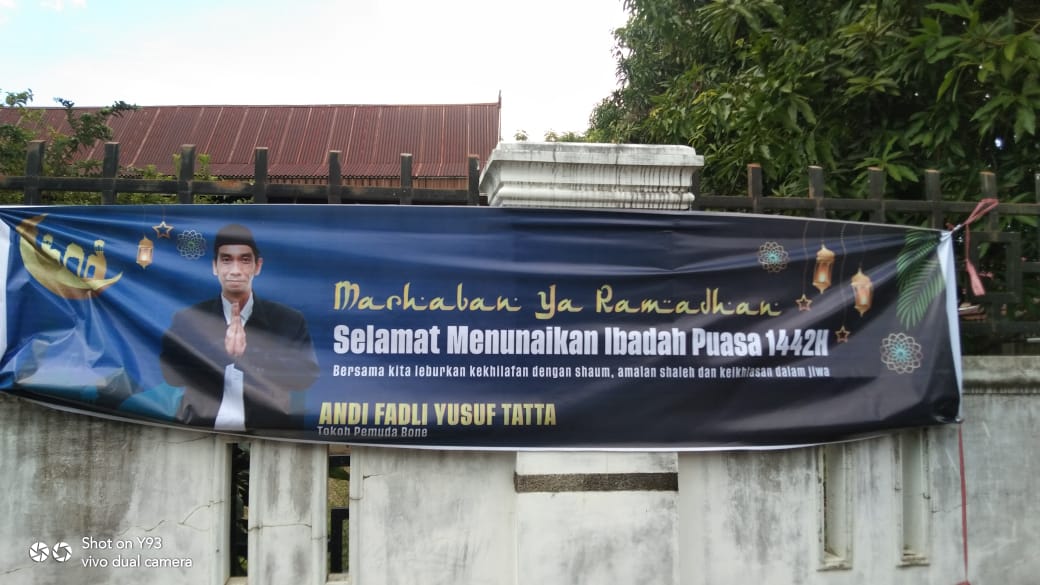Terlihat jelas spanduk berukuran 1 x 4 meter itu juga terpasang salah satunya di Desa Boda, Kecamatan Cina. Spanduk bertuliskan selamat menjalankan ibadah puasa 1422 hijriah itu juga dipasang di masjid tertua di Bone.