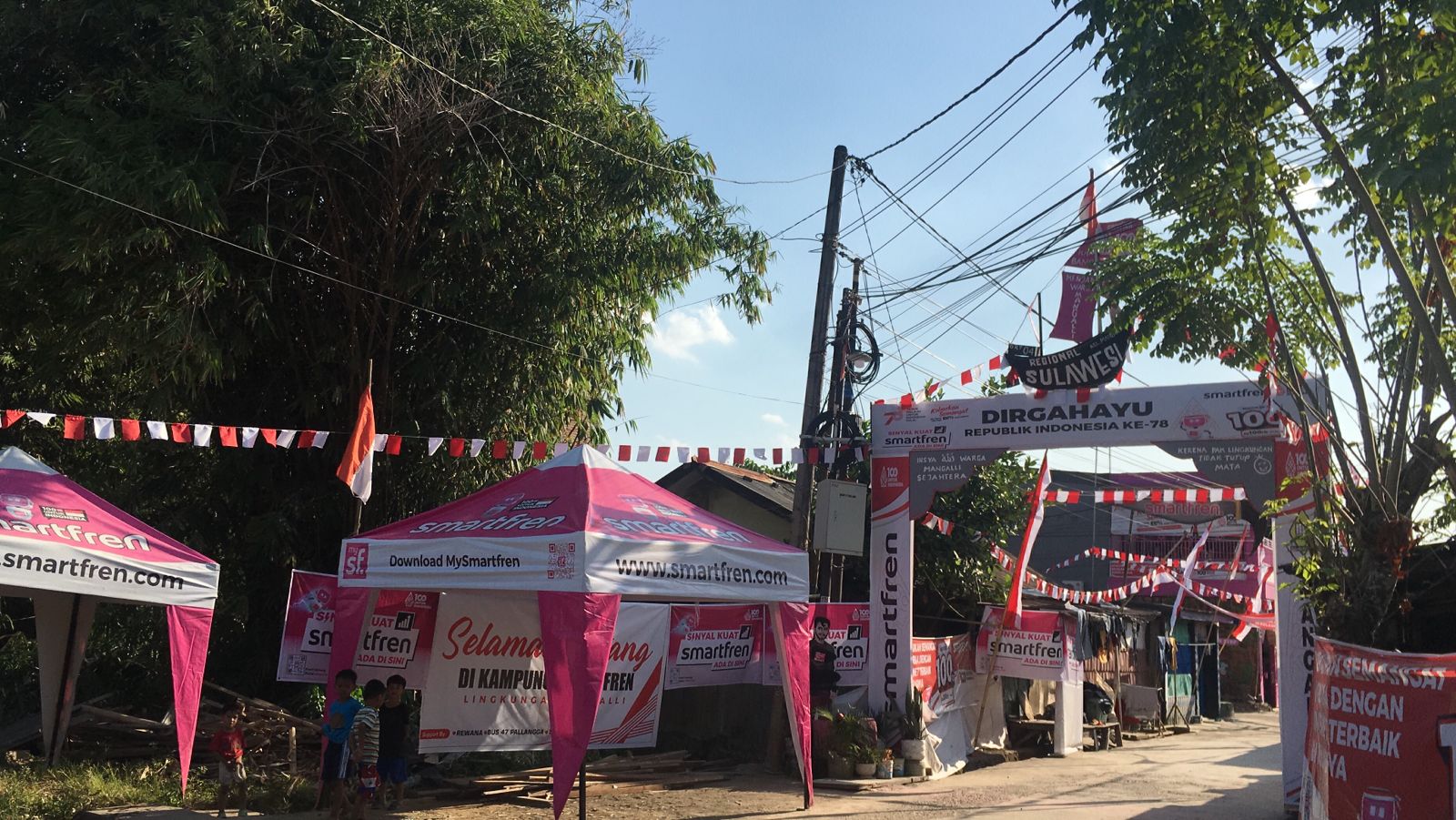 Koma.co.id, Makassar– Memeriahkan peringatan HUT ke-78 Kemerdekaan Indonesia, Smartfren Regional Sulawesi turut serta berpartisipasi untuk bersama-sama semarakkan semangat kebangsaan melalui rangkaian kegiatan yang terdiri dari Branding Gapura/lorong warga dan Perlombaan 17an warga dengan tema “Terbang Lebih Tinggi 100% Untuk Indonesia”.