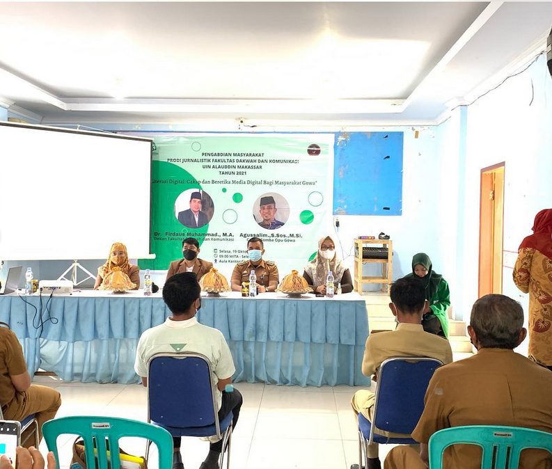 Koma.co.id, Gowa– Program Studi Jurnalistik Universitas Islam Negeri (UIN) Alauddin Makassar menggelar kegiatan edukasi bagi warga Gowa mengenai pentingnya beretika dalam penggunaan media digital, Selasa (19/10/21). Kegiatan yang berlangsung di Aula kantor Camat Somba Opu ini bertujuan untuk meningkatkan kemampuan komunikasi dan kesadaran etika masyarakat dalam menyebarkan informasi di era digital.