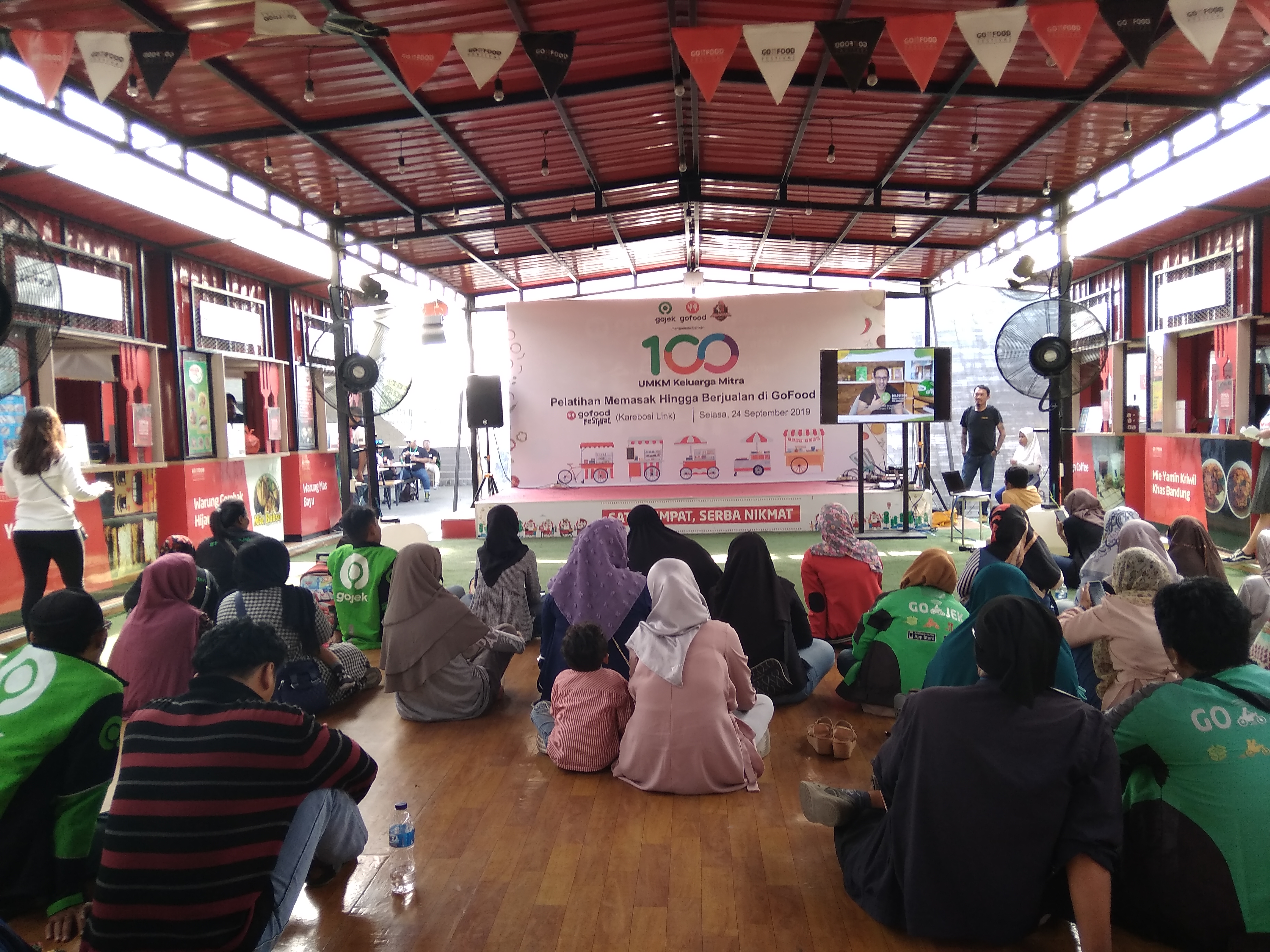 Koma.co.id– Sebanyak 100 peserta UMKM keluarga Mitra Gojek mengikuti pelatihan memasak dan berjualan di GoFood Festival, Karebosi Link, Selasa, 24 September 2019.