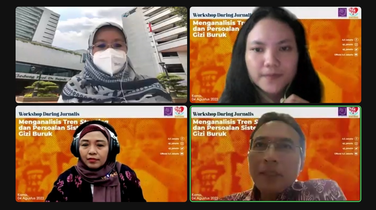 Menimbang pentingnya edukasi pemenuhan gizi anak, AJI Jakarta bekerja sama dengan KOPMAS (Koalisi Perlindungan Kesehatan Masyarakat) menggelar Workshop Kesehatan “Menganalisis Tren Stunting dan Persoalan Sistematis Gizi Buruk” pada Kamis, 4 Agustus 2022.