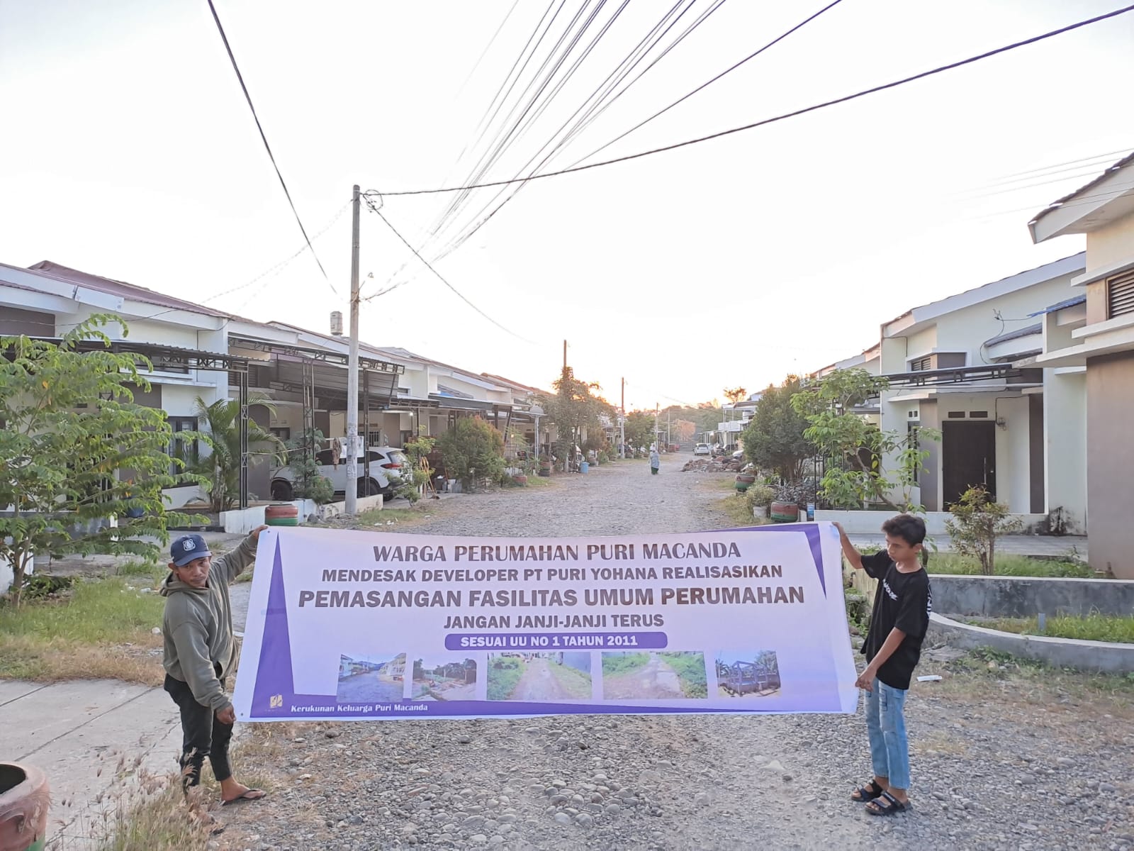 Salah satu warga Puri macanda Bahtiar menyamaikan bahwa “Saya sudah tinggal di Puri Macanda sejak 31 Desember 2018 dan sampai saat ini fasilitas umum yang dijanjikan belum juga terealisasi seperti jalan yang tak kunjung diperbaiki padahal unit sudah habis terjual sejak tahun 2020, sumber air bersih yang dijanjikan menggunakan water treatment dan mengalir 24 Jam sampai sekarang belum juga terealisasi, warga saat ini hanya memanfaatkan sumber air dari 1 sumur yang digunakan bersama dan hanya mengalir dalam waktu tertentu karena keterbatasan ketersediaan air, selain itu masih ada beberapa warga yang telah melakukan pembelian secara cash belum menerima sertifikatnya” .